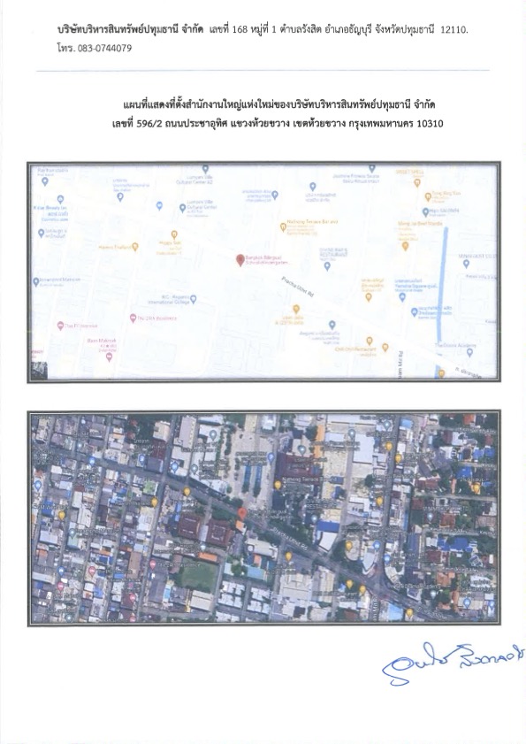 ประกาศแจ้งย้ายที่ทำการบริษัทใหม่ ของบริษัท บริหารสินทรัพย์ปทุมธานี